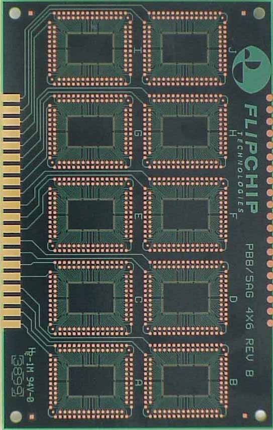 Laminate 4-layer FR4 board for placement and daisy chain continuity testing after assembly. Bottom side of substrate has 10 mounting sites for 220 bumps 10.2mm x 15.23mm. Top side of substrate has 10 mounting sites for 88 bumps 5.08mm x 5.08mm Go to--> 902000 kit