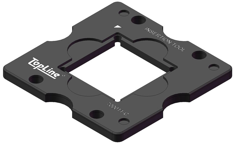 Essential tool for centering and accurate X/Y Theta alignment of LGA in graphite. Includes precision alignment template with aperture allowing annular ring vision of LGA pads while seated in graphite |