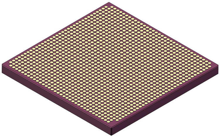 Graphite structure with array of holes to match CCGA pads. Holds columns upright. Bottom side has downset to clear solder paste fillets. Top side has receptacle to accept optional Flip-Pack® U.S. Patents D808350 S. |